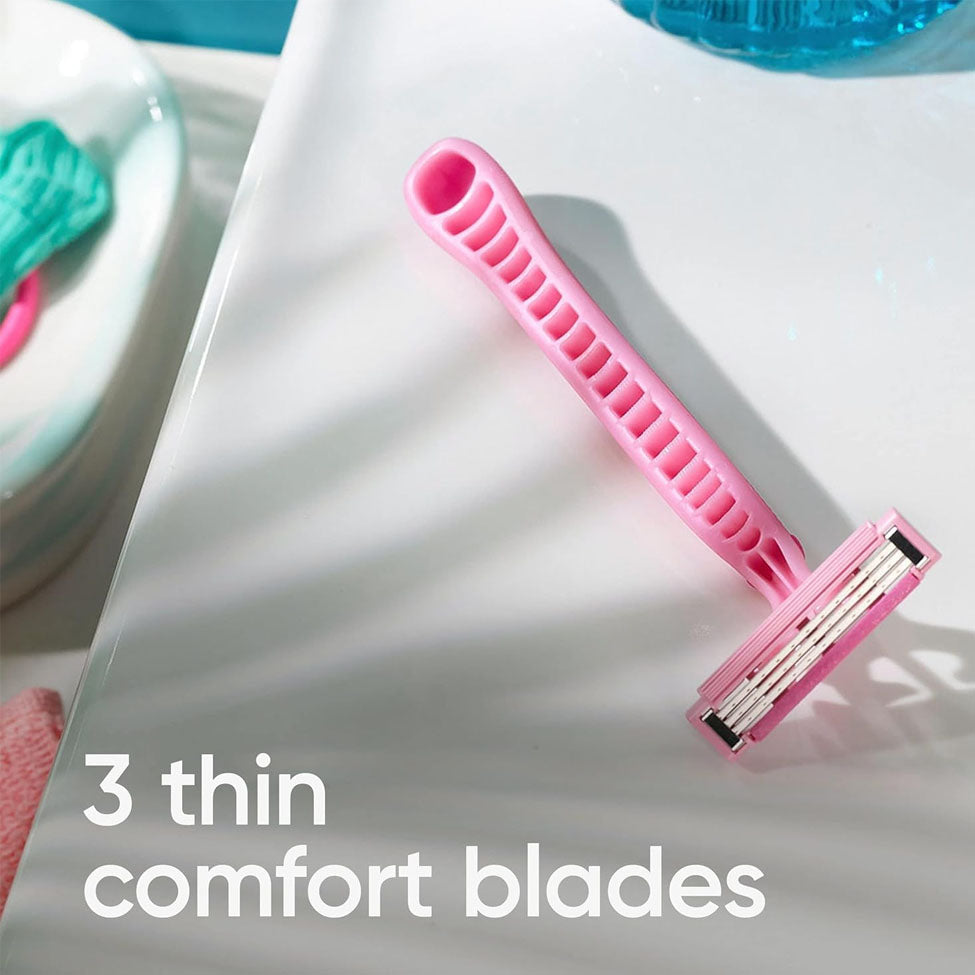 استمتعي بالحلاقة واحصلي على تجربة مريحة مع شفرة الحلاقة فينوس 3 من جيليت فينوس ذات الاستعمال لمرة واحدة. مصنوعة خصيصًا للنساء لتوفير أداء سلس على بشرتهم الفريدة والحساسة. شفرة حلاقة ذات الاستعمال لمرة واحدة توفر تجربة حلاقة آمنة بسعر مناسب. تتميز بمحور ثلاثي الشفرات بالإضافة إلى شريط ترطيب للانزلاق وزعانف صغيرة واقية تساعد على تقليل الجروح. استمتعي بحلاقة آمنة مع المزيد من الراحة من خلال استخدام شفرة الحلاقة هذه
