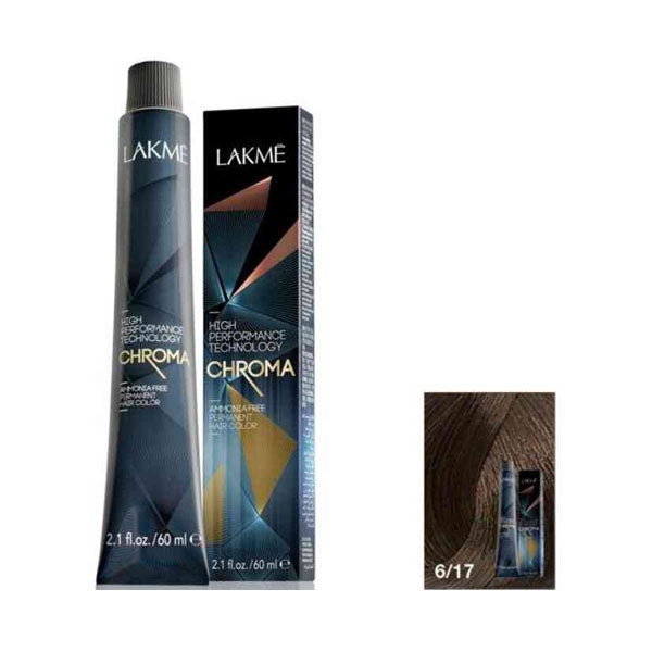 لاكمي كروما صبغة شعر باللون الأشقر الداكن الرمادي 6/17 تمنح شعرك لونًا طبيعيًا غنيًا ولمعانًا يدوم طويلًا، مع تركيبة لطيفة تحافظ على صحة الشعر.