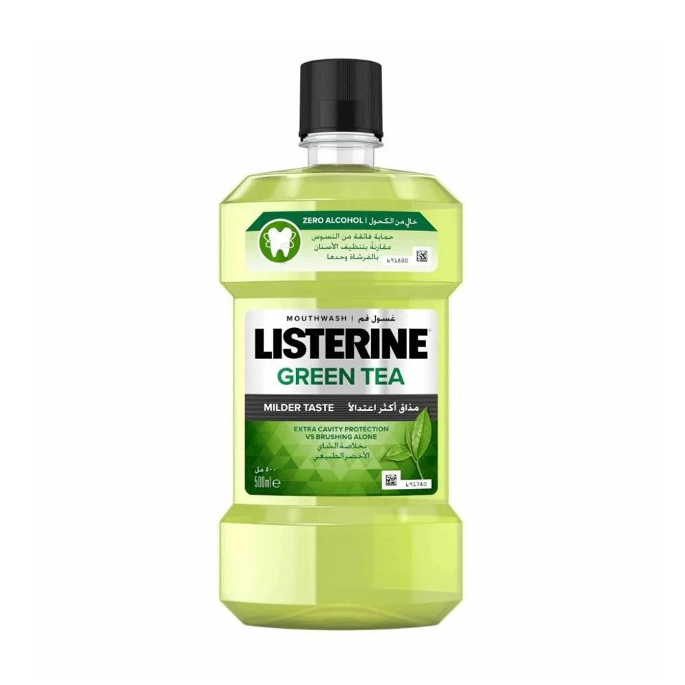 تم تركيبه خصيصاً بضعفي الفلورايد الذي يحتويه معجون الأسنان ليقدم حماية إضافية من التسوس.غسول الفم ليسترين الشاي الأخضر غني بخلاصة الشاي الاخضر الطبيعية والزيوت العطرية الأساسية، ويوفر حماية أكثر من التسوس مقارنة بفرشاة الأسنان وحدها، وذلك عبر تقوية المينا، حتى في الأماكن التي يصعب الوصول إليها.