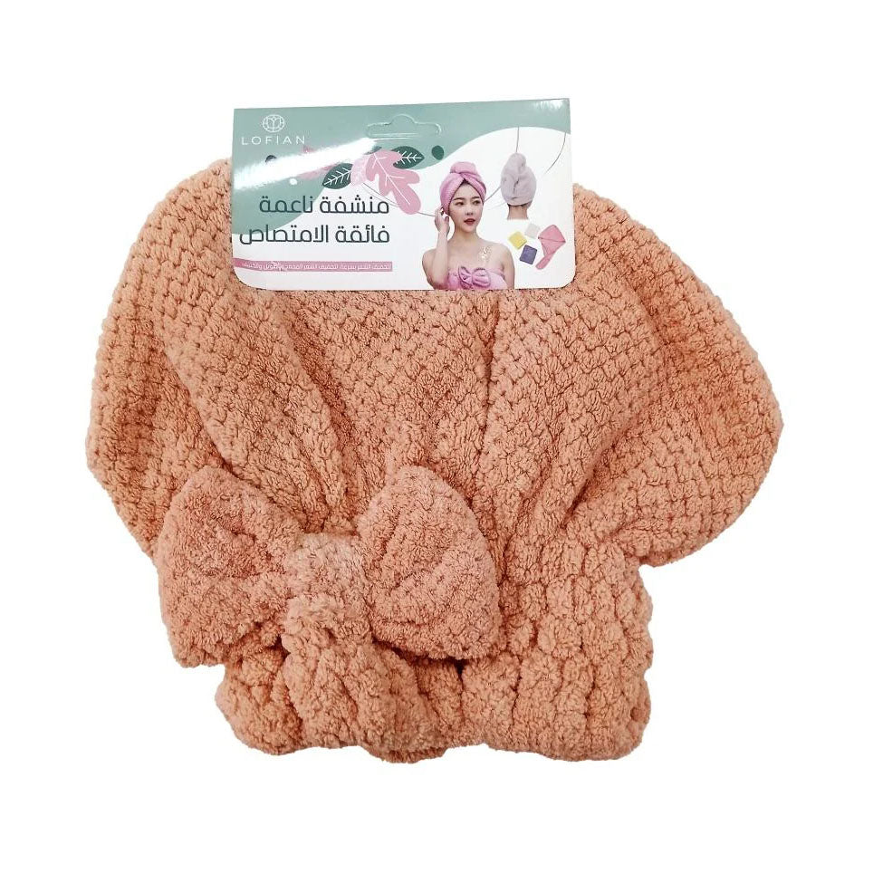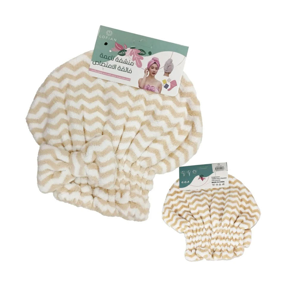 استمتعي بتجفيف شعرك بسهولة وراحة مع منشفة شعر طاقية من لوفيان. تصميم مبتكر على شكل طاقية يثبت الشعر بشكل مثالي، يمتص الماء بسرعة ويقلل التجعد، مما يجعلها مثالية بعد الاستحمام أو خلال الروتين اليومي للعناية بالشعر.
