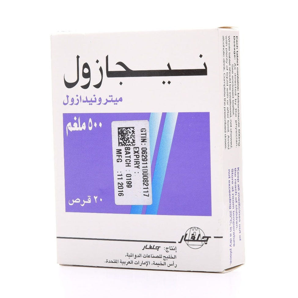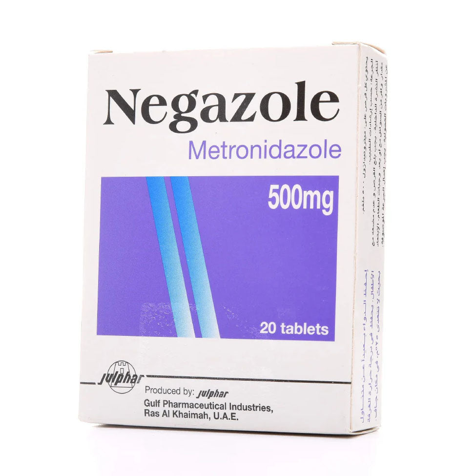 نيجازول 500-20 قرص هو دواء مضاد للبكتيريا يحتوي على مادة الميترونيدازول، مصمم لعلاج الالتهابات البكتيرية في الجسم.