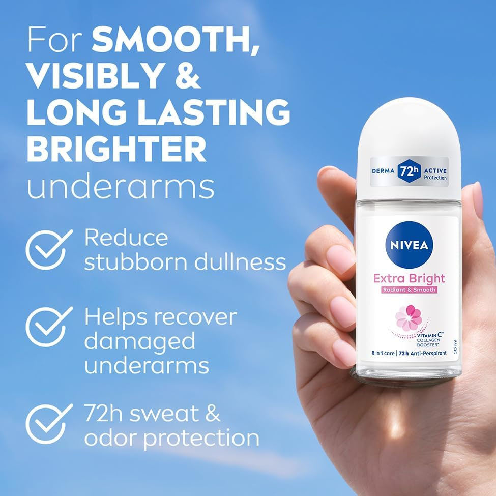 - يساعد مزيل العرق نيفيا إكسترا وايت على تفتيح البشرة تحت الإبط واستعادة نعومتها الطبيعية، بفضل تركيبته الغنية بفيتامين C وخلاصة العرقسوس.