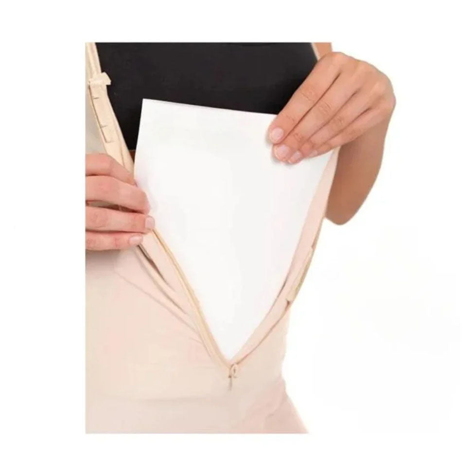 يتم وضعه بعد العملية بشكل مباشر تحت المشد ليقوم بتوزيع الضغط بشكل متساوي والتقليل من وجود الثنايا و الطوايات مما يساعد على شد الجلد و الالتئام السريع و التخلص من الكدمات و التورم بعد العملية.