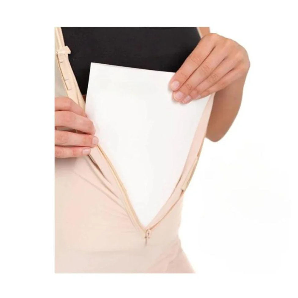 يُوضع تحت المشد ليساعد في توزيع الضغط بشكل متوازن، والحد من التورم، والوقاية من التكتلات أو التجمعات الدموية بعد العملية.
