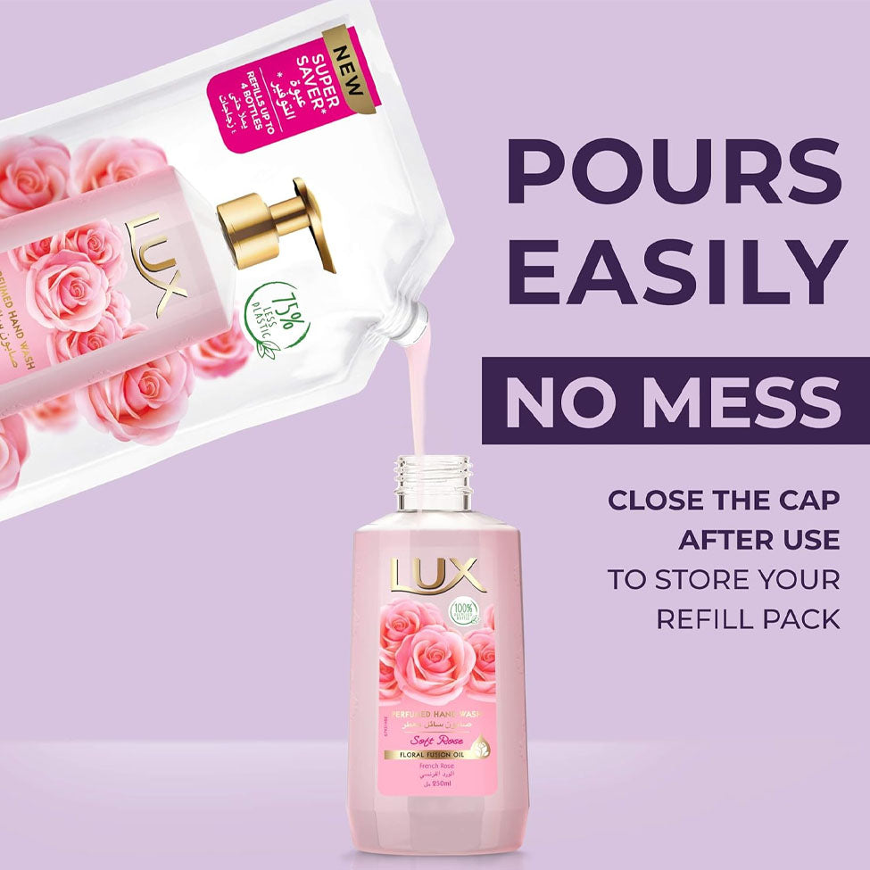 لوكس صابون سائل معطر لليدين برائحة الورد الناعم في عبوة إعادة تعبئة 1لتر