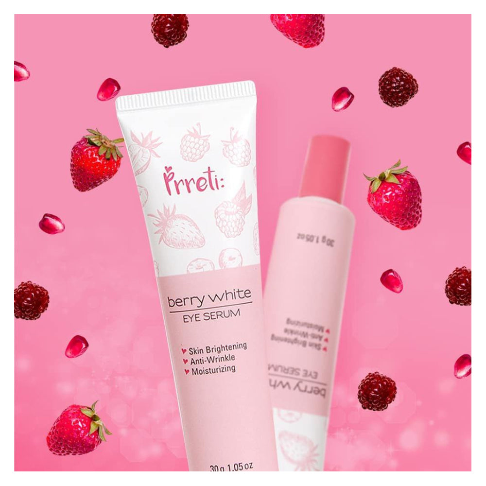 تأثير مزدوج من النياسيناميد و الأدينوسين لتفتيح و ازالة تجاعيد منطقة تحت العين، تحتوي على 6 انواع من التوت: توت الأكاي، والتوت، والتوت، والفراولة، والتوت الأزرق، والتوت الأسود لتنشيط البشرة، والعناية بمنطقة تحت العين.