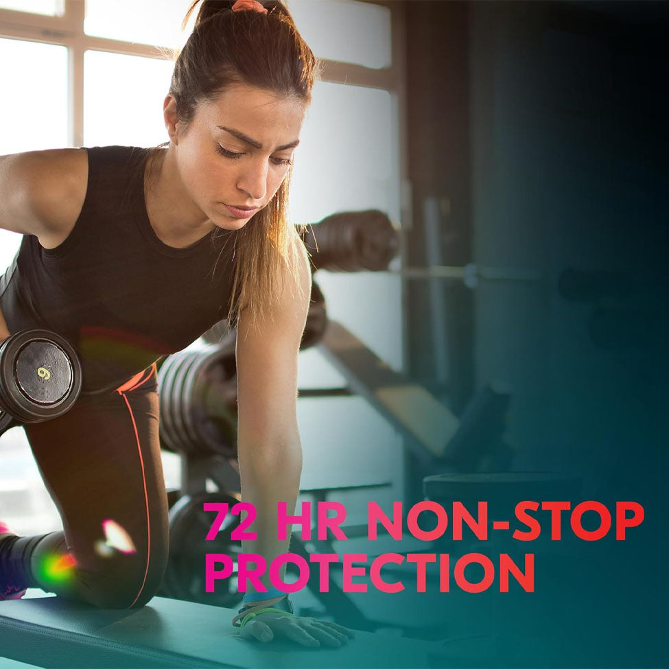 • حماية تدوم 72 ساعة: فعالية عالية ضد العرق والروائح غير المرغوبة.