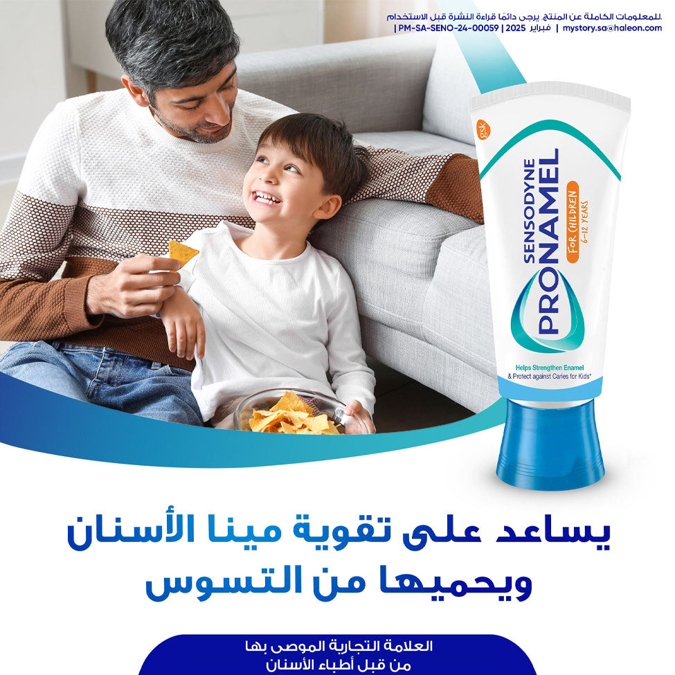 معجون أسنان سنسوداين واقي المينا للأطفال هو معجون أسنان بالفلورايد للاستعمال اليومي، تم تطويره بالتعاون مع أطباء الأسنان للمساعدة في حماية أسنان الأطفال من تأثيرات الأغذية والمشروبات الحمضية.