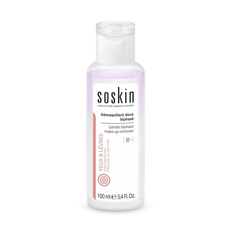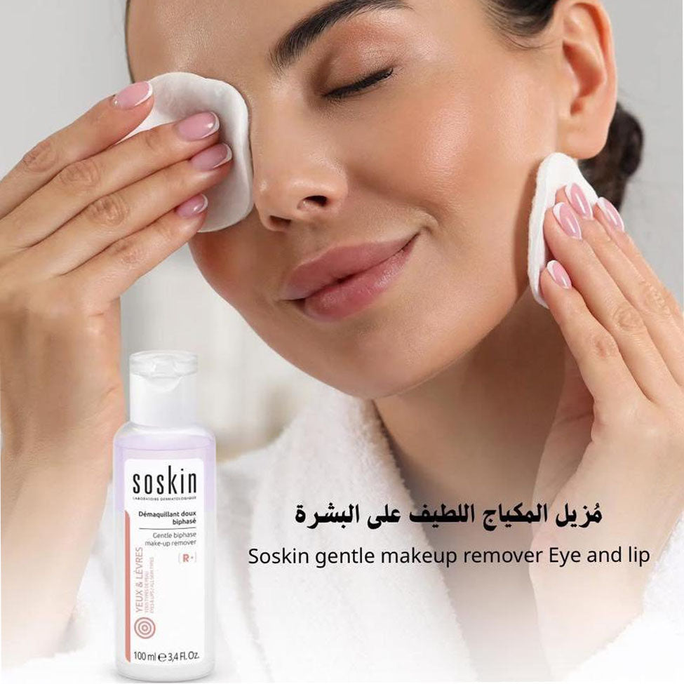منتج لطيف وفعال لإزالة المكياج المقاوم للماء وأحمر الشفاه دون فرك، مناسب للبشرة الحساسة حول العينين والشفاه.