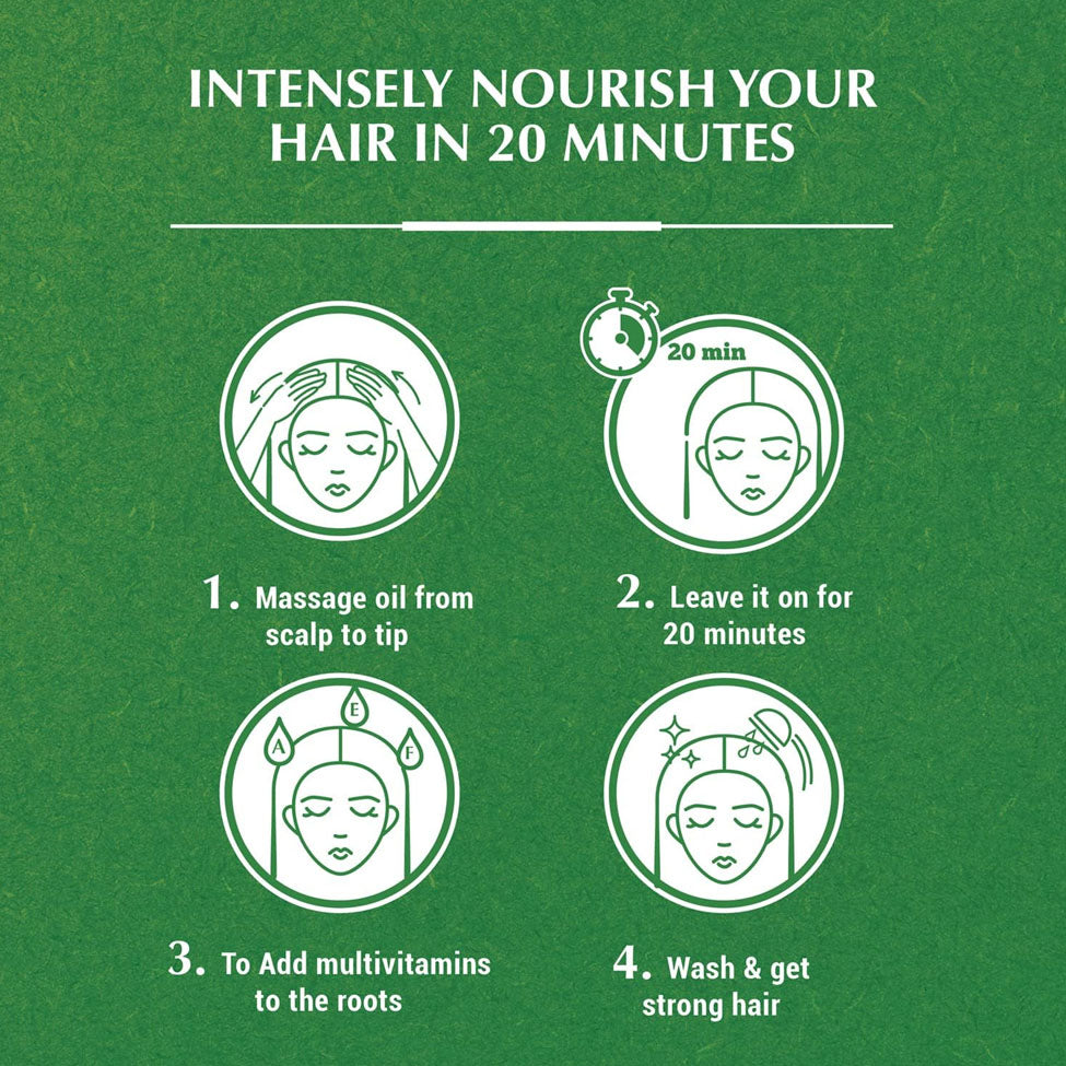 دلّكي الشعر لمدة 10–15 دقيقة، ثم اتركيه لمدة لا تقل عن 30 دقيقة.