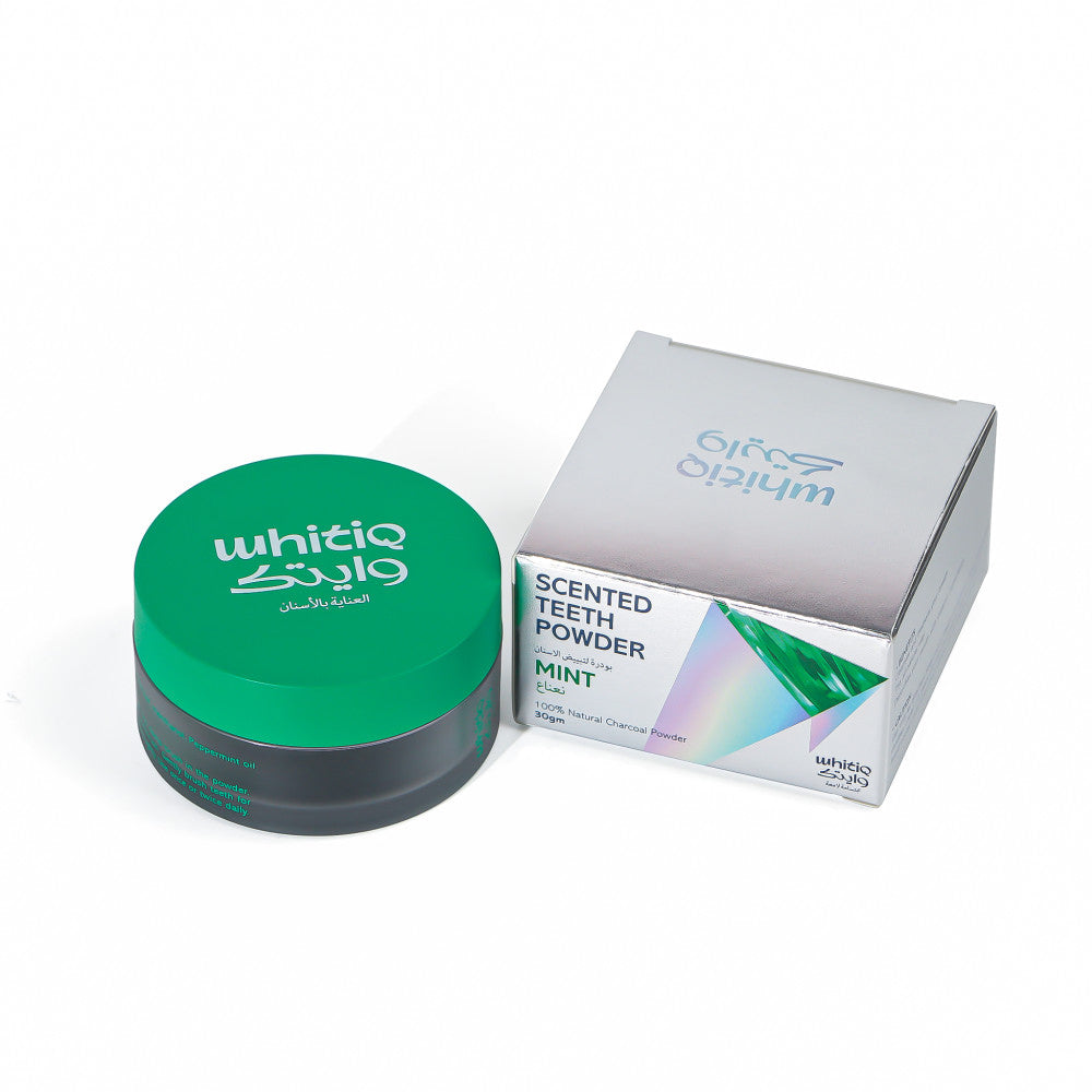 قدم لابتسامتك العناية الطبيعية التي تستحقها مع مسحوق تبييض الأسنان المعطر من وايتك.